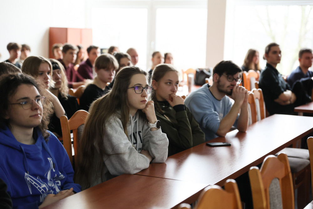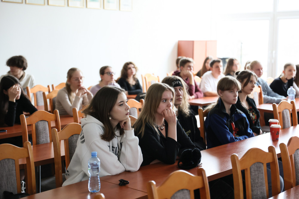 Młodzież wzięła udział w warsztatach gier komputerowych przygotowanych przez dr. Wacława Kulczykowskiego, który opowiedział także o zajęciach "Historia w grach" na specjalności "Historia w przestrzeni medialnej" prowadzonych na kierunku Historia.