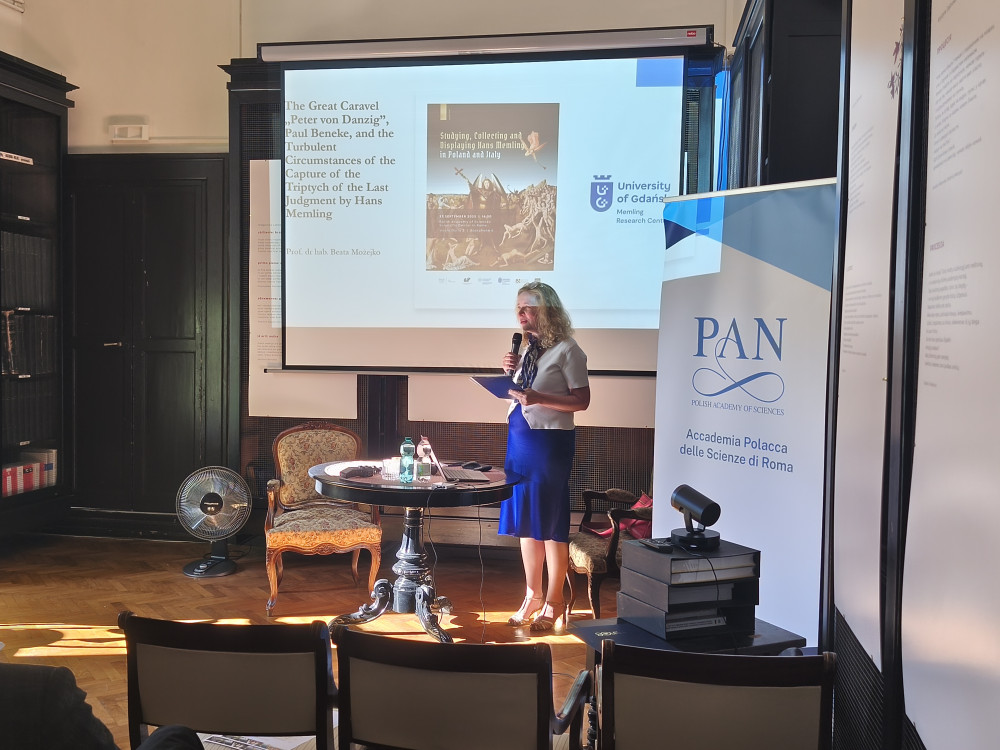 Prof. Beata Możejko i prof. Andrzej Woziński wygłosili referaty podczas seminarium „Collecting and Displaying Hans Memling in Poland and Italy”, które odbyło się 25 września 2025 r. w Stacji Polskiej Akademii Nauk w Rzymie.
