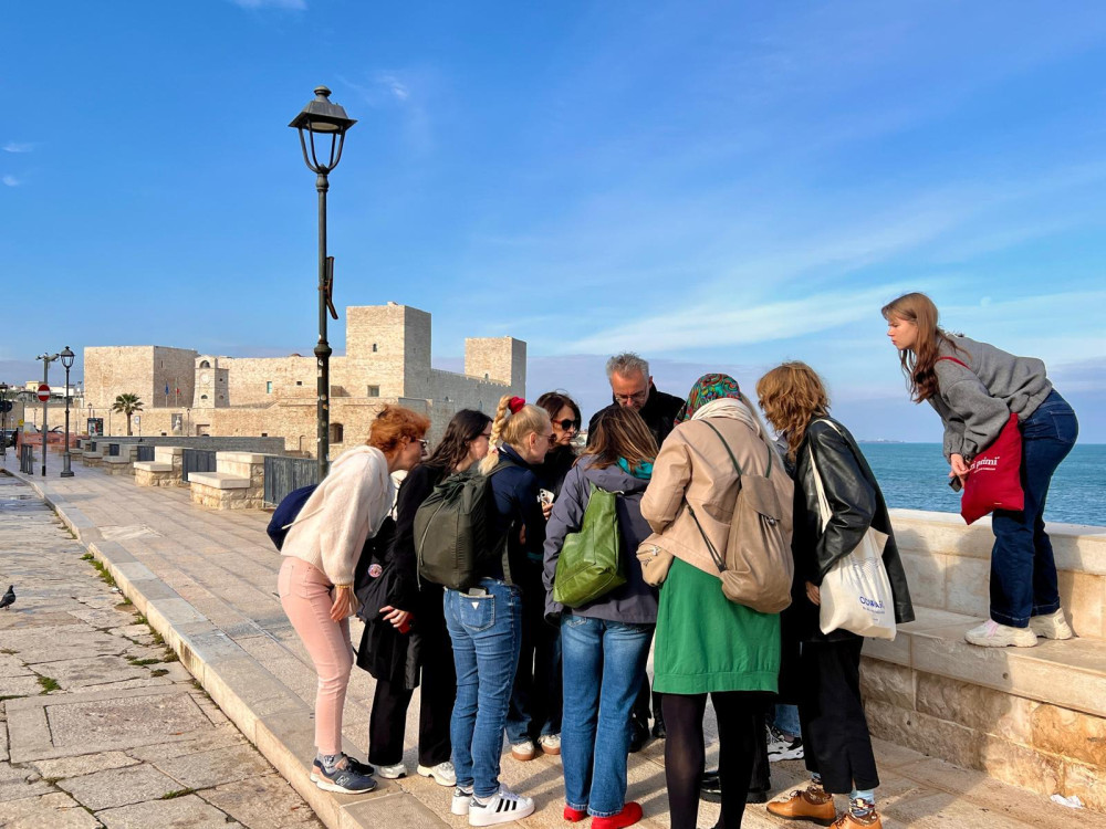 Bazę wypadową stanowiło Bari, stolica regionu, znana szerzej dzięki otoczonej wielowiekowym kultem postaci św. Mikołaja, a w Polsce także dzięki królowej Bonie Sforzy czy targom lewantyńskim. Miasto szczyci się także wybitnymi przykładami architektury XIX i XX wieku. Inspirująca podróż po stylach, podczas której przemierzono kilkanaście miejscowości (Bari, Altamura, Gravina in Puglia, Castel del Monte, Bitonto, Andria, Trani, Bisceglie, Molfetta, Polignano a Mare, Giovinazzo) i równie tyle muzeów stanowiła nie lada wyzwanie logistyczne. Pomocą okazała się żelazna dyscyplina uczestników, niezawodna kolej włoska oraz (w przypadku Castel del Monte) życzliwość kierowcy autobusu, który specjalnym kursem - poza normalnym rozkładem jazdy - przywiózł całą grupę do słynnego zamku cesarza Fryderyka II Hohenstaufa.