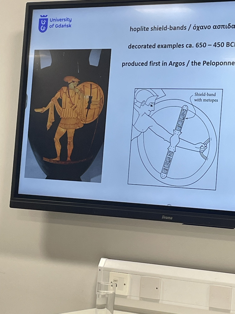 W swoim wystąpieniu dr Kucewicz omówił, w jaki sposób i z jakich powodów greccy hoplici dekorowali swoje uzbrojenie. Koncentrując się przede wszystkim na zdobionych paskach tarcz hoplickich, zaprezentował on również internetową bazę danych Gdańsk Decorated Armour Database (www.dad.ug.edu.pl), która od 2023 roku cieszy się dużą popularnością wśród badaczy i studentów z całego świata.