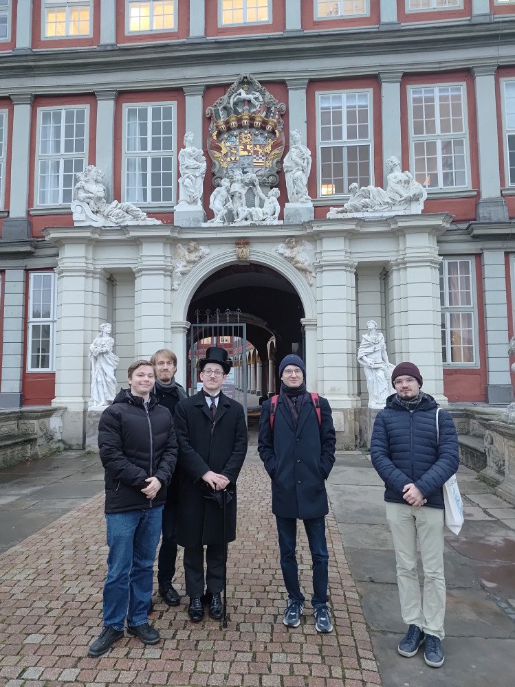 Studenci historii - III roku studiów licencjackich (specjalności Archiwistyka i zarządzanie dokumentacją oraz Historia w przestrzeni medialnej) i I roku magisterskich (specjalności Współczesne muzeum), pod opieką dr. Marcina Swobodzińskiego, wizytowali 24 listopada 2025 r. w Landesarchiv w Wolfenbüttel (Niemcy). W trakcie wizyty zapoznali się z historią, strukturą organizacyjną oraz zasobami archiwum, a także zwiedzili magazyny archiwalne. Uczestnicy mieli również możliwość obejrzenia najcenniejszych jednostek archiwalnych, zaprezentowanych przez Dyrektora archiwum. W ramach pobytu studenci odwiedzili również jedną z najsłynniejszych bibliotek w Niemczech – Herzog August Bibliothek w Wolfenbüttel, gdzie zapoznali się z jej bogatymi zbiorami oraz skorzystali z dostępnych zasobów.