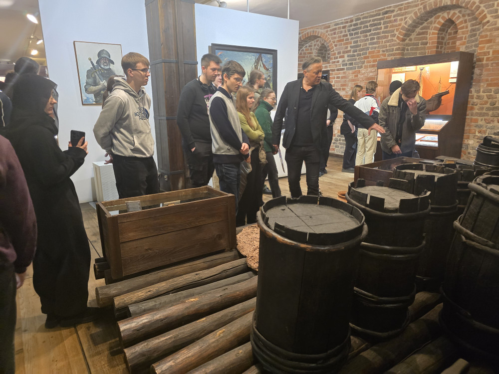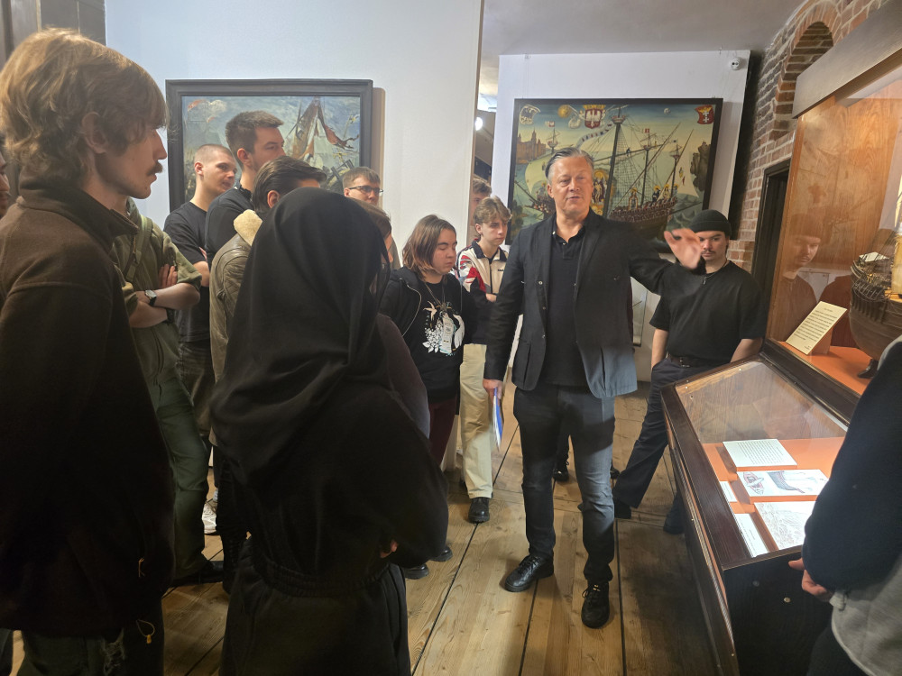 Podczas wizyty grupa zapoznała się z ekspozycją poświęconą nowożytnym i współczesnym dziejom Polski na morzach. Wśród omawianych zagadnień znalazły się m.in. wraki „Miedziowiec”, „Solen”, „De Jonge Seerp” oraz „General Carleton of Whitby”, a także spław wiślany, handel i transport dalekomorski, artyleria okrętowa, budownictwo okrętowe oraz bitwa pod Oliwą z 1627 roku.